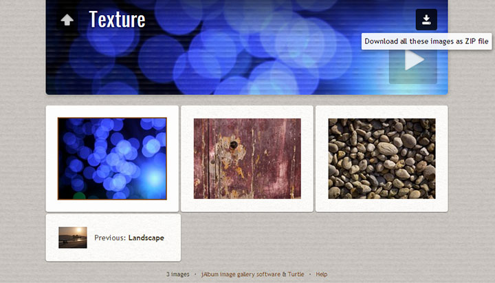 The whole album will be included in the ZIP. Downloading and extracting this file the visitors will be able to view it as a working album. (Minus the commenting and other social features which require the album to come from the server.)