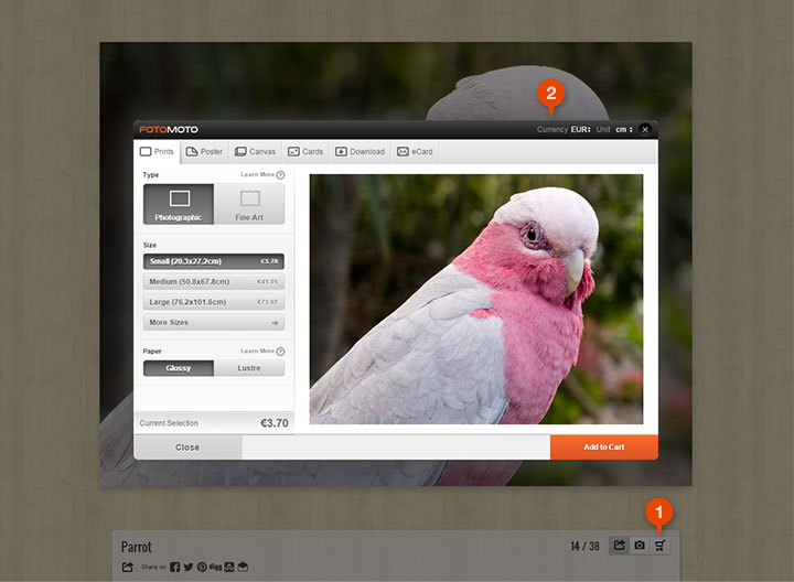 You can order prints, posters and even digital downloads through Fotomoto.