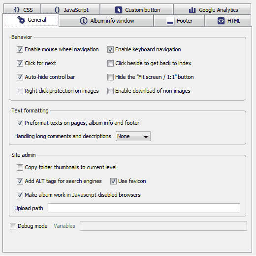 With this option turned on, the visitors will not be able to use the right-click (context) menu on images. This is useful if you want to block them from saving the images. They can still use this menu on other parts of the album.