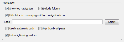 No links will appear below (or above) the thumbnails if you select this option, (provided the top navigation is on).