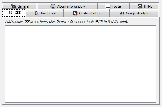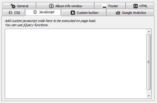 - Add HTML content in this box, which appears on a popup window, when the visitor clicks the custom button. Check out the sample album above to get the idea!